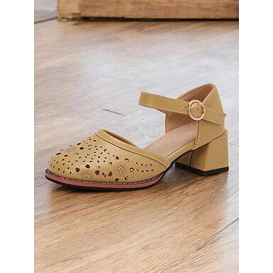 女性用 ヒール パンプス 靴 ウイングチップシューズ ヴィンテージシューズ パーティー アウトドア 日常 カラーブロック 夏 コーンヒール ラウンドトウ エレガント 旅行度假风 かわいいスタイル レザー バックルは含まれません ブラック イエロー パープル