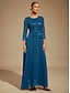 女性用 ミディドレス シフォンドレス エレガント 結婚式のゲスト カクテルパーティー ティーパーティー 純色 七分袖 クルーネック ピーコックブルー 春 秋 冬