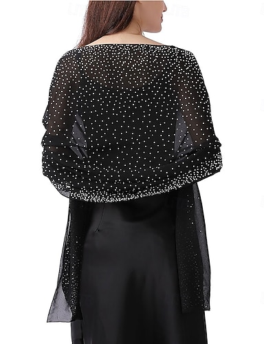 イブニングドレス用の女性用ショールとラップ。キラキラ光るラインストーンのシアーシフォンスカーフ、ショール、フォーマルドレスカバー。