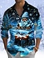 クリスマス 男性用 サンタクロース クリスマスツリー トナカイ シャツ ボタンアップシャツ 長袖 ヴィンテージレトロ クリスマスギフト 祝日 春 秋 折襟 3Dプリント 襟付きシャツ ブルー 青2# 青1#
