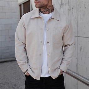男性用 シャツジャケット コーデュロイジャケット カジュアル 日常 高通気性 ポケット クラシック 春 & 秋 平織り クラシック カジュアル ラペル レギュラー ブラック ホワイト カーキ色 アーミーグリーン ジャケット