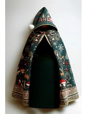 女性用 カジュアルジャケット クローク / 岬 快適 高通気性 プリント ヴィンテージ カジュアル クリスマス バケーション ストリート カジュアル デイリーウェア オープンフロント ロング フード付き ルーズフィット 長袖 アウターウェア グリーン 春 秋