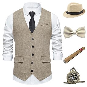レトリ/ヴィンテージ 20代の轟音 1920年代風 セット チョッキ パナマハット 標準 紳士 ギャング 仮装 男性用 クリスマス ハロウィーン カーニバル プロムドレス クラブ バチェロレッテパーティー 成人 ベスト 弓 ハット オールシーズン