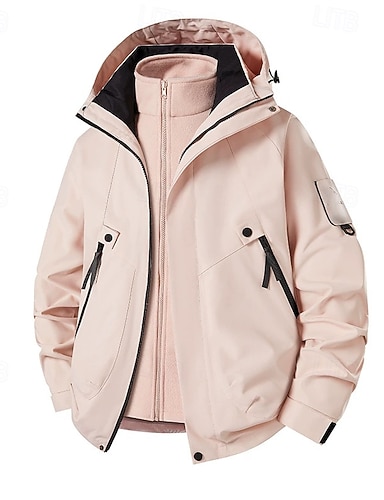 女性用 3-in-1 防水ダウンジャケット 防水 快適 ジッパー ポケット カジュアル 平織り バケーション ストリート デイリーウェア お出かけ ジッパ- レギュラー フード付き レギュラー 長袖 アウターウェア ブラック ホワイト ピンク 春 秋