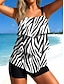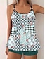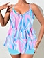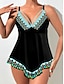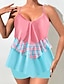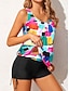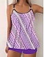 ウィメンズタンクini2ピース水着 チーキー バックレス バケーション ビーチウェア グラフィック カラーブロック ホルターネック ノースリーブ バススーツ