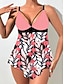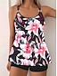 ウィメンズタンクini2ピース水着スカートお腹引き締めハイウエストスリムバックレスバケーションビーチウェアフローラルカラーブロックVネックスリーブレスビキニ