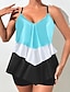 女性用 スイムウェア タンキニ 2ピース スカート 水着 ドローストリング ホルター エレガント 旅行度假风 カラーブロック 幾何学的な スクープネック ノースリーブ 水着