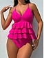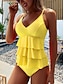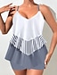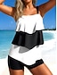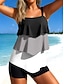 ウィメンズタンクini2ピース水着カラーブロックハイウエストフリルレイヤーバックレスバケーションビーチウェアオムブレグラフィックUネックノースリーブ水着