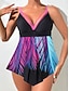 ウィメンズタンクini 2ピース水着 チーキー お腹引き締め ハイウエスト スリム バックレス バケーションビーチウェア グラフィック カラーブロック Vネック ノースリーブ水着
