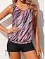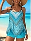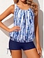 ウィメンズ タンキニ 3ピース 水着 ショーツ お腹引き締め ハイウエスト スリム バックレス バケーション ビーチウェア グラフィック ジオメトリック Uネック ノースリーブ バススーツ