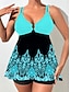 女性用タンクニ 2ピース水着 パーム ショーツ お腹コントロール ハイウエスト スリム バックレス バカンス ビーチウェア フローラル カラーブロック Uネック ノースリーブ 水着