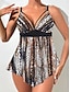 女性用 スイムウェア タンキニ 2ピース ショーツ 水着 ハイウエスト スリム バックレス 旅行度假风 ビーチウェア レオパード カラーブロック Vネック ノースリーブ 水着