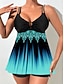 女性用タンキニ2ピース水着 ショーツ お腹引き締め ハイウエスト スリム バックレス バカンス ビーチウェア グラデーション フローラル Uネック ノースリーブ 水着