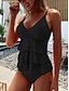 女性用タンクini2点セット水着 スリムラッチャード チーキー お腹引き締め ハイウエスト スリム バックレス バケーション ビーチウェア カラーブロック Vネック ノースリーブ 水着