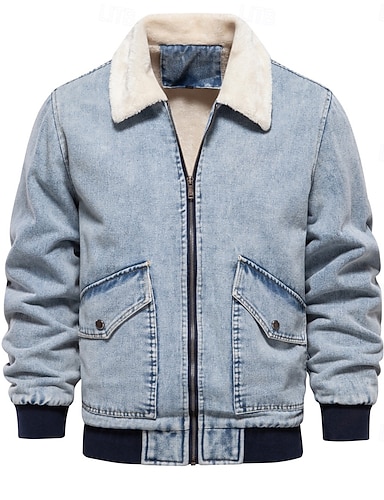 男性用 フリースの上着 ジーンジャケット デニムジャケット カジュアル/普段着 秋冬 カラーブロック カジュアル ラペル レギュラー ダークグレー ダークブルー ライトブルー ジャケット