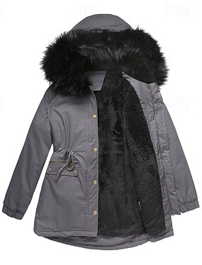 女性用 冬物コート コート 防水 防風 ドローストリング ポケット ボタン 毛皮の襟 エレガント ファッション プラッシュ クラシック 純色 アウトドア バケーション ストリート デイリーウェア レギュラー フード付き ルーズフィット 長袖 アウターウェア 海軍 ブラック ワイン 秋 冬
