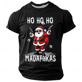 男性用 サンタクロース 面白いスラング Tシャツ 半袖 Tシャツ 3Dプリント クルーネック シャツ ファッション 日常 ストリート 日常 ブラック ルビーレッド ブルー 夏 春 衣類 S M L XL XXL XXXL