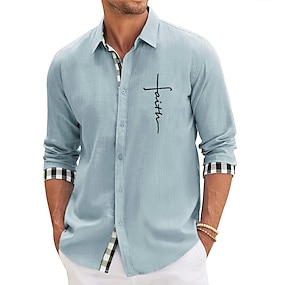 男性用 十字架 シャツ ボタンアップシャツ 長袖 ファッション ストリートファッション デザイナー アウトドア カジュアル 日常 夏 春 秋 折襟 プリント ピンク ブルー グリーン カーキ色 グレー