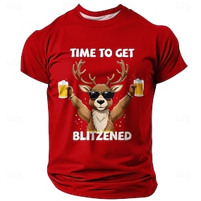 クリスマス 男性用 サンタクロース ドイツ語 Tシャツ 半袖 Tシャツ 3Dプリント クルーネック シャツ 日常 デザイナー アーティスティック バケーション パーティー ストリート ブラック ルビーレッド ブルー オールシーズン 衣類 S M L XL XXL XXXL