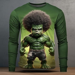 男性用 グラフィック カートゥン おかしい Tシャツ 長袖 Tシャツ 3Dプリント クルーネック シャツ ファッション カジュアル ストリートスタイル スポーツ・アウトドア 祝日 お出かけ バーガンディー パープル グリーン 春 & 秋 衣類 S M L XL 2XL 3XL