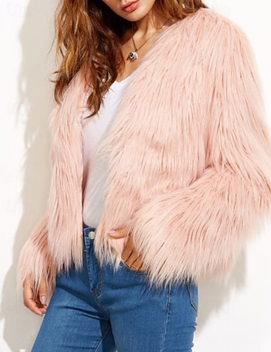 女性用 フェイクファーコート 保温 快適 毛皮と革製品 ファッション 平織り バケーション ストリート お出かけ 週末 レギュラー クルーネック レギュラー 長袖 アウターウェア ブラック ホワイト ピンク 秋 冬