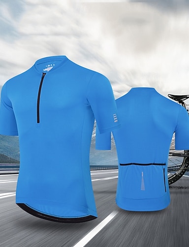 男性 スウェットシャツ ストライプ 半袖 バイク トラックスーツ ジャージー 3つのリアポケット付き 速乾性 高通気性 スポーツ ブルー ホワイト ルビーレッド 衣類
