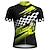 男性 サイクリングジャージー ダウンヒルジャージー 幾何学模様 チェッカーボード 半袖 バイク ジャージー Tシャツ 3つのリアポケット付き UV耐性 速乾性 ポケット付き フロントファスナー スポーツ グリーン 衣類
