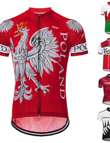 男性用 サイクリングジャージー パターン柄 スイス デンマーク 半袖 バイク ジャージー トップス 3つのリアポケット付き マウンテンサイクリング ロードバイク UV耐性 速乾性 反射性ストリップ 後ポケット スポーツ レッド / ホワイト 衣類