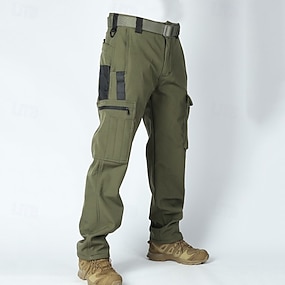 男性用 カーゴパンツ タクティカルパンツ ズボン ハイキング パンツ ボタン 弾性ウエスト マルチポケット 平織り 速乾性 耐久性 アウトドア 日常 キャンピング&ハイキング ファッション クラシック ブラック アーミーグリーン