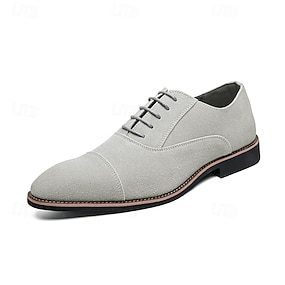 メンズ グレー スエード オックスフォード シューズ - ビジネス、結婚式、フォーマルなイベントに最適なクラシックなキャップトゥ レースアップ ドレスシューズ