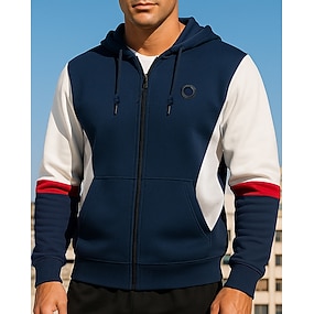 男性用 スポーツパーカースウェットシャツ フリースカーディガンジャケット ポケット 長袖 トップス アスレイジャー 秋 パッチワーク 防風 ウォーム ハイキング いい結果になる アスレチック スポーツウェア アクティブウェア アーミーグリーン ダークブルー グレー