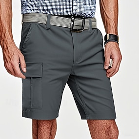 男性用 カーゴショーツ ショーツ サマーショーツ ドローストリング 弾性ウエスト マルチポケット 平織り 履き心地よい 耐久性 膝丈 アウトドア スポーツ 日常 ファッション カジュアル ブラック イエロー