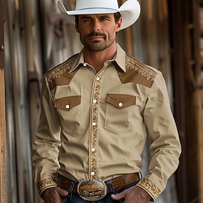 男性用 カウボーイ ウエスタンシャツ ボタンアップシャツ カウボーイシャツ 長袖 ヴィンテージ 西洋料理 アウトドア 日常 祝日 春 秋 冬 折襟 襟付きシャツ 3Dプリント ブラウン カーキ色 グレー