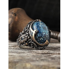 メンズヴィンテージブルーストーンステートメントリング - バイカースタイル、パーティー、普段使いに最適なレトロゴシック合金ジュエリー
