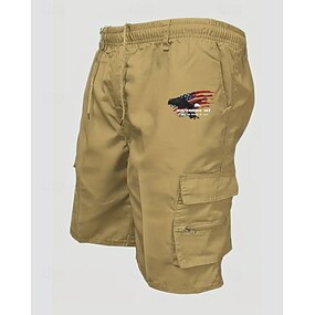 男性用 カーゴショーツ ショーツ サマーショーツ ドローストリング 弾性ウエスト マルチポケット イーグル 国旗 履き心地よい 耐久性 膝丈 アウトドア スポーツ 日常 ファッション カジュアル ブラック ダークブルー