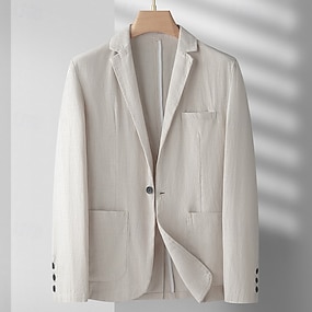 男性用 リネンブレザー ビジネス ファッション カジュアル 春 & 秋 ポリエステル リネン 平織り ポケット ボタン 快適 シングルブレスト ブレザー ホワイト ライトグリーン カーキ色