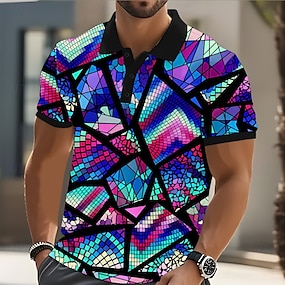 男性用 抽象的 幾何学的な ポロ 半袖 ポロシャツ 襟付きシャツ カジュアル アスレイジャー デイリーウェア ストリートウェア ボタン 夏 ブルー パープル オレンジ