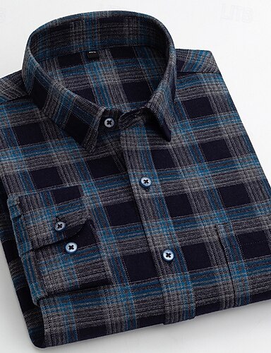 男性用 シャツ カジュアルシャツ チェックシャツ ボタンアップシャツ 格子柄 アウトドア デイリーウェア ネイビーブルー ロイヤルブルー ブルー スカイブルー 長袖 ラペル 秋冬 衣類 フロントポケット