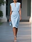 女性用 ミニドレス ボディコンドレス セミフォーマルドレス オフィス スリム 平織り ノースリーブ クルーネック ブラック ホワイト ルビーレッド グリーン 夏 春