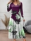 女性用 ロングドレス マキシドレス カジュアルドレス スイングドレス サマードレス エレガント ファッション 近代の 日常 ビーチ 週末 レギュラー フラワー 長袖 スプリットネック ライトグリーン ピンク ルビーレッド ライトパープル 夏