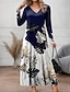 女性用 ミディドレス カジュアルドレス スイングドレス A ラインドレス 自由奔放に生きるドレス ヴィンテージ カジュアル 日常 レギュラー フラワー 長袖 Vネック ダークブルー ベージュ 春 秋
