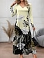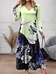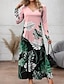 女性用 ロングドレス マキシドレス プリントドレス ファッション 近代の 日常 祝日 お出かけ レギュラー フラワー グラフィック 長袖 Vネック ライトイエロー ライトグリーン ピンク グリーン 春 秋