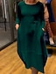 ウィメンズ マキシドレス カフタン 3/4丈袖 クルーネック カジュアル シフトドレス Aラインドレス ボヘミアン デイリーホリデーデート グラフィック アブストラクト スカイブルー グリーン ダークブルー ピーコックブルー 春