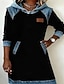 女性用 ミニドレス パーカードレス カジュアルドレス ファッション 近代の アウトドア バケーション 日常 レギュラー 平織り 長袖 フード付き ブラック ホワイト イエロー グリーン 秋 冬