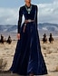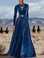 女性用 ロングドレス マキシドレス 黒いドレス ベルベットドレス エレガント 近代の 日常 お出かけ 週末 レギュラー 平織り 長袖 クルーネック ブルー ブラック ワイン ブラウン 春 秋