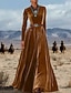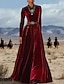 女性用 マキシドレス サンドレス A ラインドレス 旅行度假风 カジュアル ボヘミアン パーティー 祝日 ビーチ ルーズフィット グラフィック 幾何学模様 抽象的 長袖 Vネック ダークブラウン ダークレッド ルビーレッド ライトブラウン 春 秋
