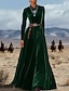 女性用 ミディドレス ベルベットドレス ファッション 近代の オフィス 日常 お出かけ レギュラー 平織り 長袖 Vネック ブラック ワイン ブラウン グリーン 春 秋 冬