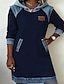 女性用 ミディドレス デニムドレス シャツドレス カジュアルドレス ファッション 近代の アウトドア 日常 お出かけ レギュラー 平織り 半袖 シャツカラー ダークブルー 春 秋