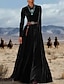 クリスマス レディース ベルベット マキシドレス シフトドレス カジュアル アウトドア 外出用 ルーズフィット ソリッドカラー ロングスリーブ Vネック ブラック イエロー グリーン ダークブルー 秋冬