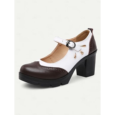 女性用ヴィンテージ ブラック&ホワイト メリージェーン チャンキーヒール シューズ - オフィスやカジュアルウェアに最適なレトロなブローグスタイル